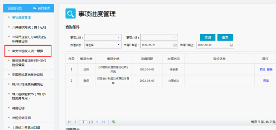 已申报完非税收入的纳税人,可通过此功能进行中央非税收入统一票据的开具