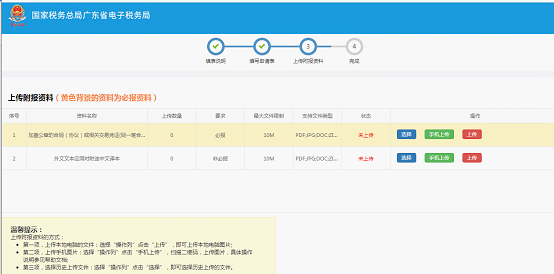 3.按要求填写申请表,点击上传附报材料后点击【完成】即可