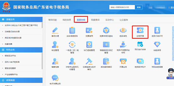 2.点击【我要办税】-【证明开具】-【服务贸易等项目对外支付税务备案】进入该模块