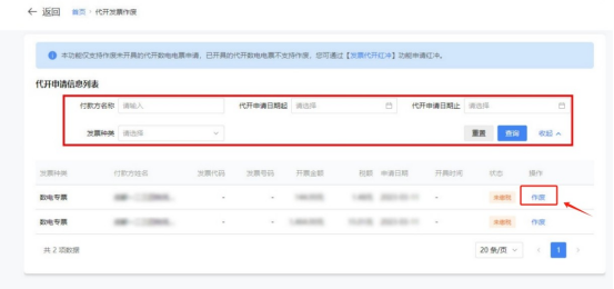5.点击【确认】后作废成功。也可点【代开发票查询】查看发票的状态。