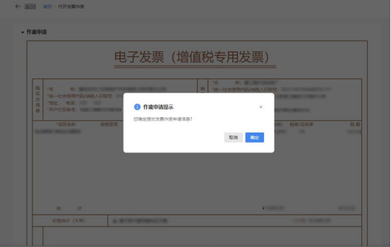 3.纳税人选择想要作废的发票信息,点击【作废】系统跳转到作废申请页面。