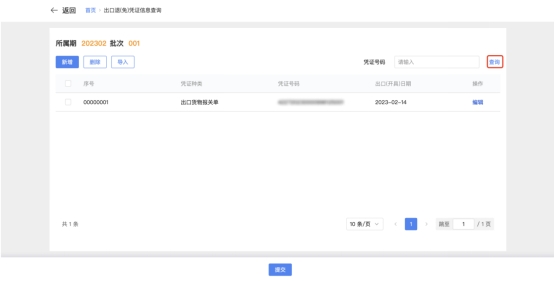 如纳税人需要对已采集凭证种类、凭证号码、出口(开具)日期等信息进行修改时,可在对应的信息栏,点击【编辑】,对数据进行修改。