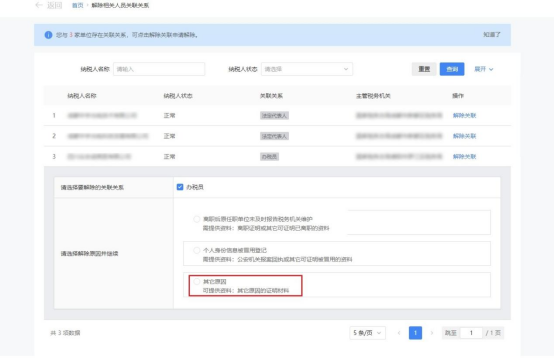 2.展示自然人关联的纳税人信息,点击【解除关联】。