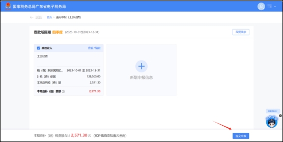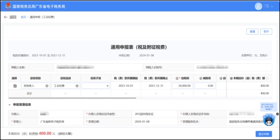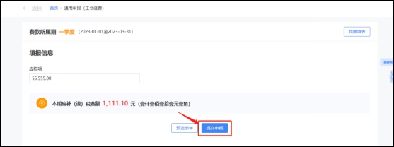 填写应税项等补充信息后,确认无误,可点击【提交申报】按钮,进行申报。