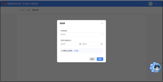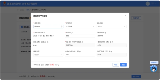 若是无工会经费税费种认定的,进入功能后需先选择纳费期限及费款所属期起止。选择完成后点击【确定】进入申报界面。
