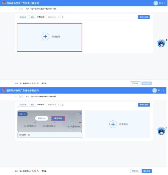 1. 点击【新增税种】卡片—勾选增加本期申报税种—【税源采集】。