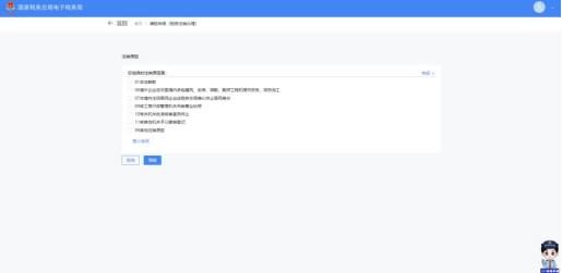 2.选择注销原因并预检