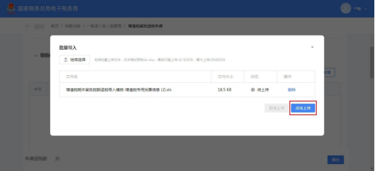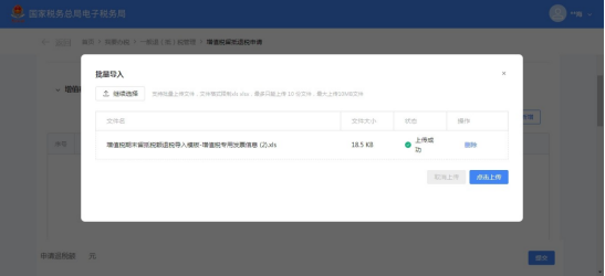 (8)点击【点击上传】上传已选择文件。