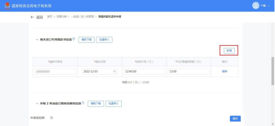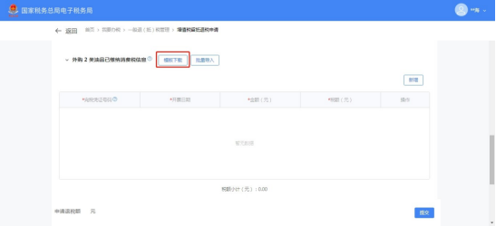 (10)如需批量添加海关进口专用缴款书信息,点击【模板下载】。