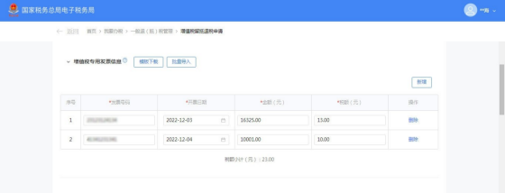 (7)点击界面框右上角【×】关闭批量导入界面,增值税专用发票信息栏自动带出已导入的增值税专用发票信息。