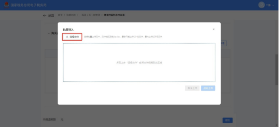 (18)点击【选择文件】,添加《增值税期末留抵税额退税导入模板-海关进口专用缴款书信息.xls》文件。