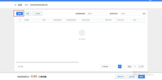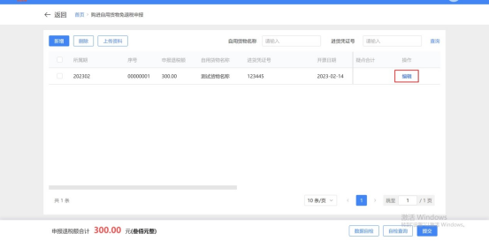 (2)进入购进自用货物免退税申报功能,展示已采集申报信息列表,可通过录入“自用货物名称”、“进货凭证号 ”筛选列表: