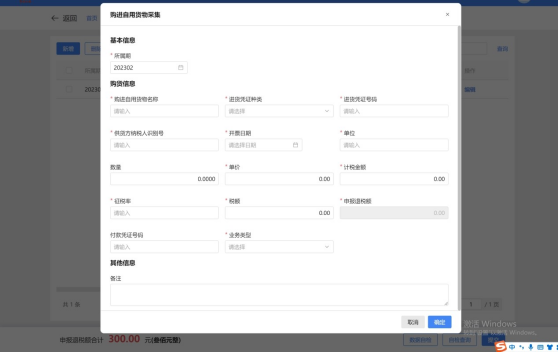 (1)点击“新增”按钮,弹出“购进自用货物采集”页面,