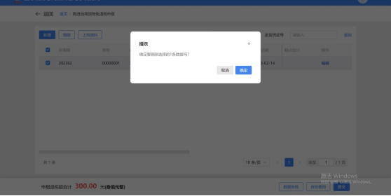 (3)勾选需要删除的明细信息,点击“删除”按钮,弹出二次确认提示,再次点击“确认”按钮则删除数据,点击“取消”则关闭弹窗。