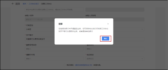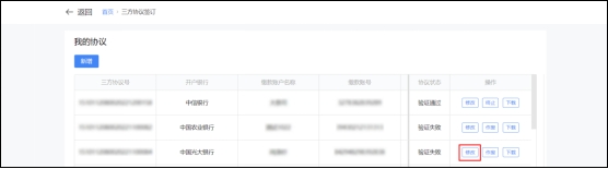 在协议状态为“验证失败”时,点击【修改】,纳税人可以修改开户银行、缴款账号等信息;
