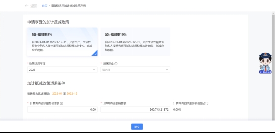 符合加计抵减政策的生产、生活性服务业纳税人,可在年度首次确认适用加计抵减政策时通过该模块向税务机关提交《增值税适用加计抵减政策的声明》。