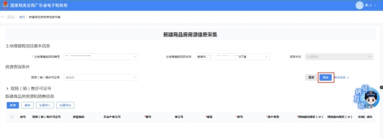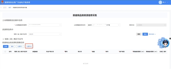 房地产开发企业取得预售许可证并完成土地增值税项 目报告后,通过此模块向税务机关报送新建商品房房源信息,报送完成后,可进行土地增值税税源明细采集及申报。
