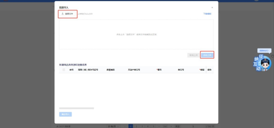 (2)导入房源信息文件。点击【选择文件】或直接拖拽文件至指定区域导入文件。若导入文件选择错误,可点击【重新选择】上传正确文件替换误传文件,或直接点击【删除】后重新导入文件。确认无误后,【点击上传】上传房源信息以及销售信息。