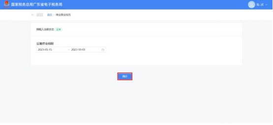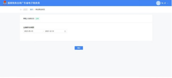 1.纳税人当前状态为“正常”,系统带出设置停业期限日期选择框。