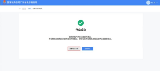 4.点击【查看电子文书】,可以下载停业登记通知书。