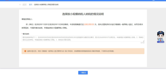 (二)进入功能后,根据纳税人身份特征和历史涉税行为,系统自动预填数据,纳税人对预填结果进行确认,并录入情况说明: