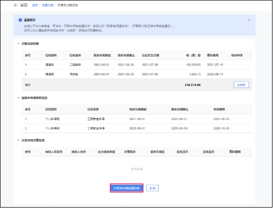 进入开具无欠税证明功能模块后,如不存在未办结事宜,则直接跳转到无欠税证明预览界面,如存在未办结事宜,则展示纳税人的未办结事项详情界面。