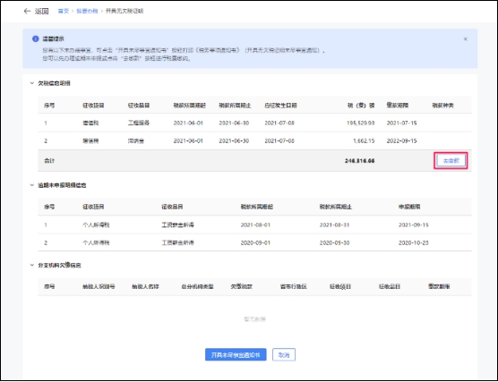 若申请人存在未办结事宜,则显示纳税人的未办结事项详情界面。