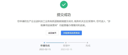 (三)点击“提交”按钮,将核销信息提交到核心征管系统,并显示申请成功。