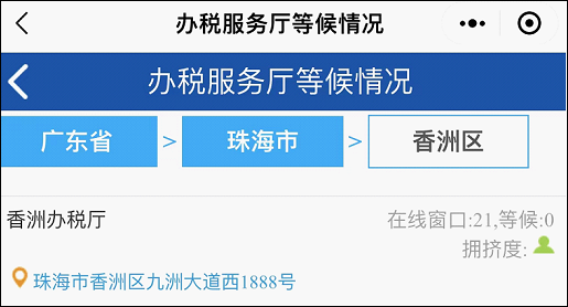 4.进入页面后,即可查看香洲办税厅等候情况。
