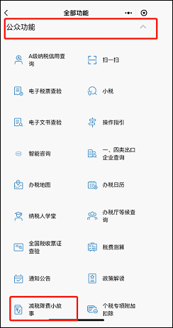 2.点击【公众功能】--【减税降费小故事】。