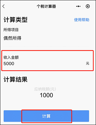5.进入页面后,输入收入金额,点击【计算】按钮,即可显示应纳税额的计算结果。