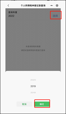 3.选择所属年份,点击【确认】,即可查询到所属年份的申报记录信息。