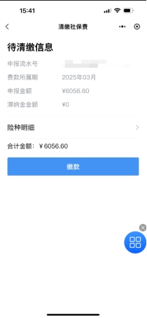 步骤4:在待清缴信息,点击【>】可查看险种明细,点击【缴款】,选择缴款方式,进行缴费。