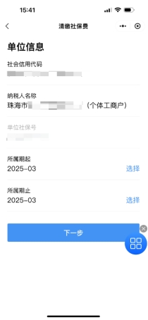 步骤3:选择需清缴社保费所属期,点击【下一步】。进入清缴社保费界面。