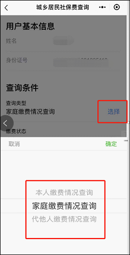 4.查询类型可以选择“本人缴费情况查询”,“家庭缴费情况查询”,“代他人缴费情况查询”