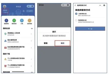 2.进入后请在左上角选择新办企业所在的城市,点击【请登录】-【确认】,选择任免识别认证或者电局密码认证,然后点击【下一步】进行个人登录。