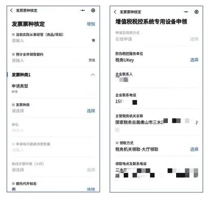 6.发票票种核定,按照实际情况填写经营项目,年销售额,选择发票种类、申领税控设备,选择服务单位,填写联系人、电话、领取方式。