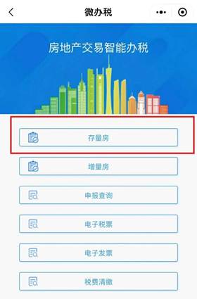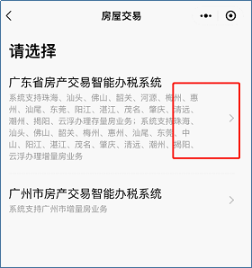 3.选择【广东省房产交易智能办税系统】点击【存量房】进入下一步。