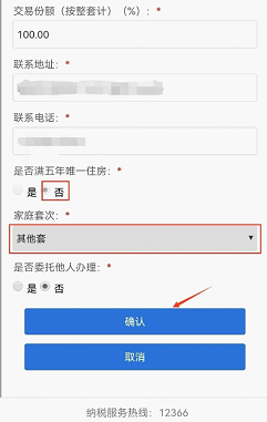 需注意房产类型(如车位、单车房等未找到对应选项,则请选择“其他”)、房屋所在地所处街乡(请根据实际情况选择)、权属转移对象(如非住房请勾选“请选择”)、房产业务类型(如非住房请勾选“请选择”)等填写。