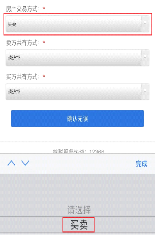 注意:因现有粤税通系统的房产交易方式只能选择“买卖”(如下图示),办理继承、析产及赠与业务时,需纳税人另行备注说明“本次交易方式为继承/析产/直系亲属赠与”,并将其以图片形式上传到其他材料栏目中。