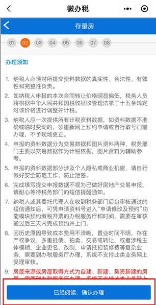 5.阅读相关办理须知后,点击【已经阅读,确认办理】进入下一步。