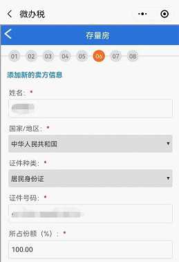 填写卖方信息时,需注意“是否满五年唯一住房”请选择“否”,家庭套次请选择“其他套”(这两个选项仅适用办理继承、析产及赠与业务的操作,若交易方式为“买卖”,则根据纳税人实际情况进行选择)。