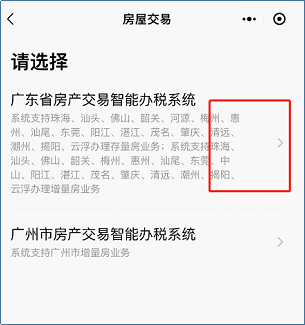 注意:以下指引需在广东省房产交易智能办税系统进行操作,主要适用于以下城市: