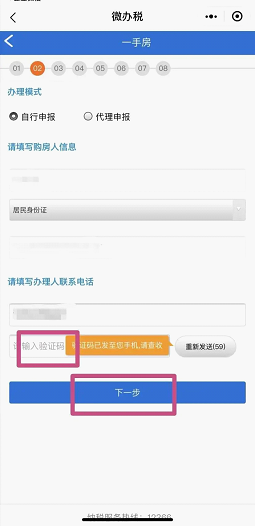 7.填写购房人信息,输入验证码,点击“下一步”。