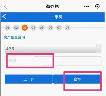 8.输入房屋买卖合同编号,点击“查询”。(如果查询不到房产信息,请带齐资料到办税服务厅办理。)