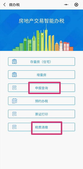 15.然后再次进入“广东省房产交易智能办税系统”,点击“申报查询”或“清缴税费”进行后续税费清缴操作。申报错误也可自行作废申报。