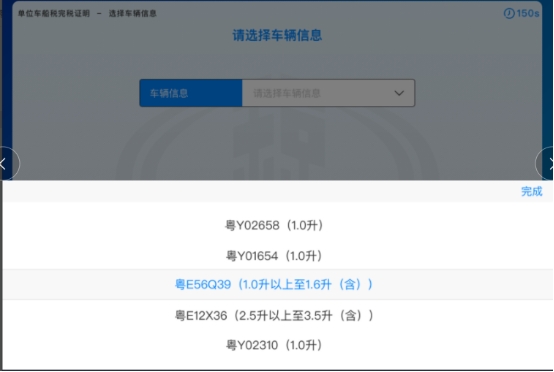 3-1.选择车辆信息,点击【完成】按钮,如下图所示: