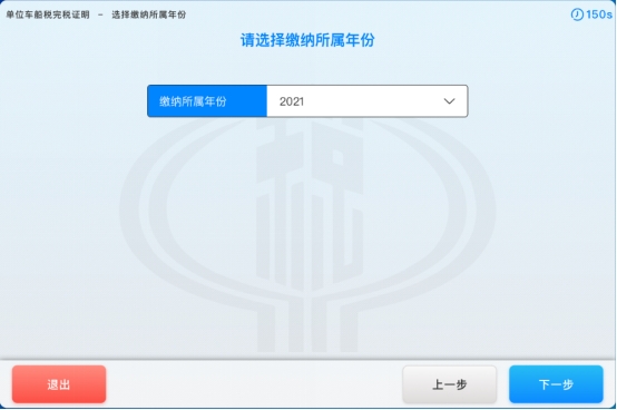 5.选择缴款所属年份,点击【下一步】按钮,如下图所示: