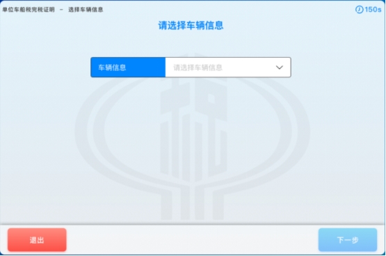 1. 在自助终端机系统主界面中,选择“单位车船税完税证明”功能。