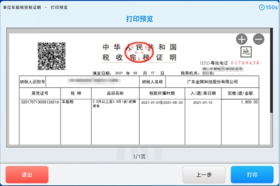 纳税人通过企业方式进行身份验证,选择单位车船税功能,选择车辆及输入查询时间后,确认应征明细信息,自助终端打印A4格式的车船税电子税票。
